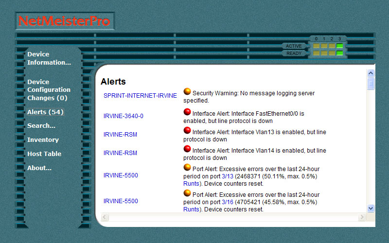 Based on our consulting experience we discovered gaps in our clients’ network management implementations. Since 2002, NetMeister has been offering a web-based network utilization and configuration management service called NetMeister PRO which complements existing network management systems.