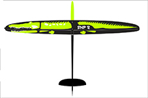 This back position of the CG decreases the angle between the wing and the stabilizer, consequently, decreases common aerodynamic drag of the model. The new thinner and more streamline Snipe 2 fuselage is also instrumental in drag reduction.